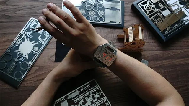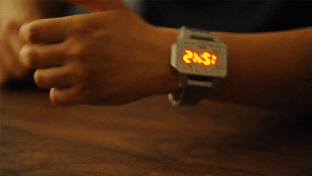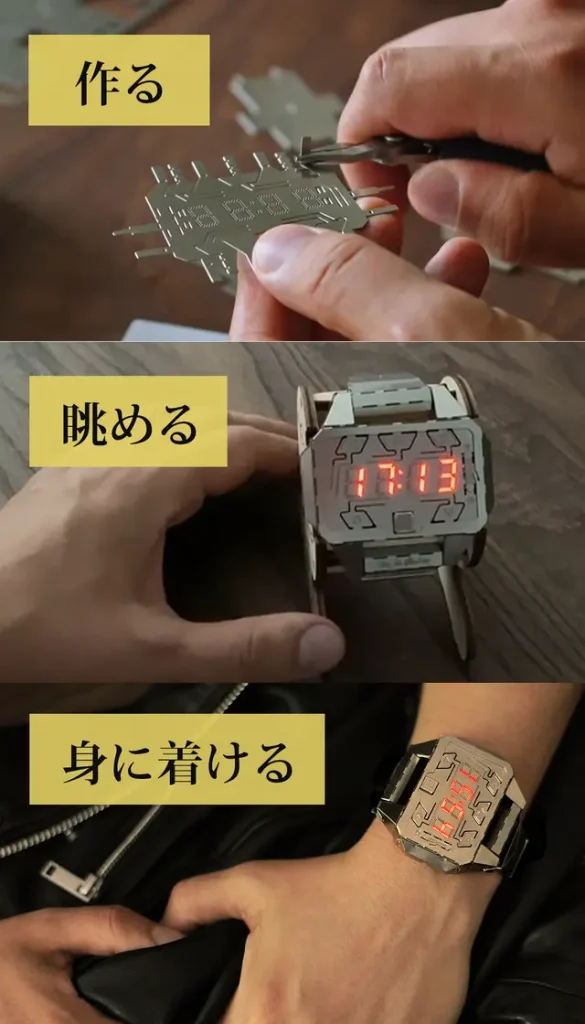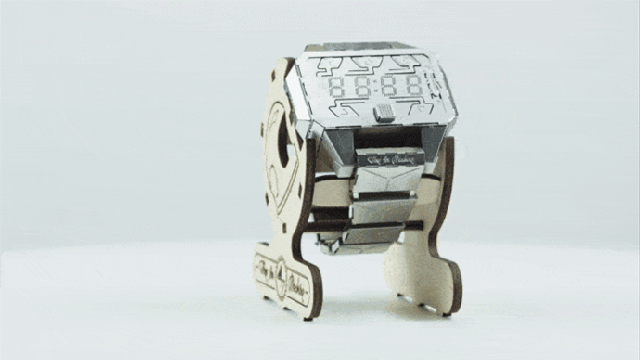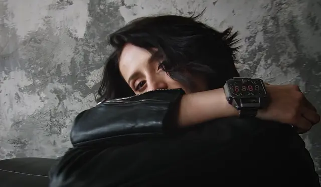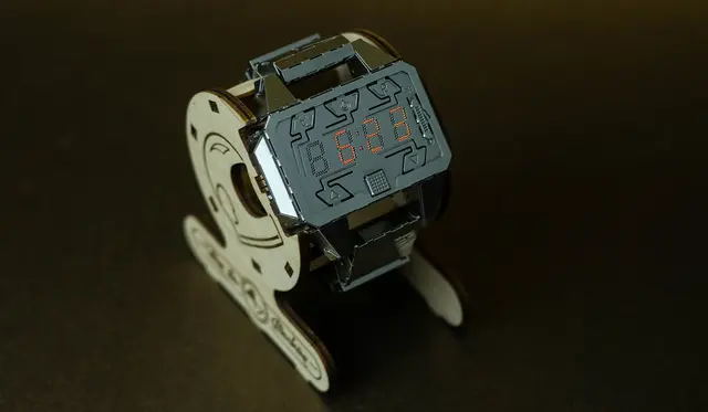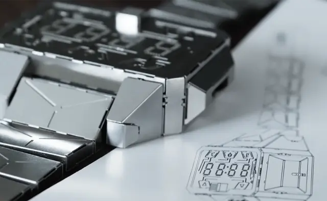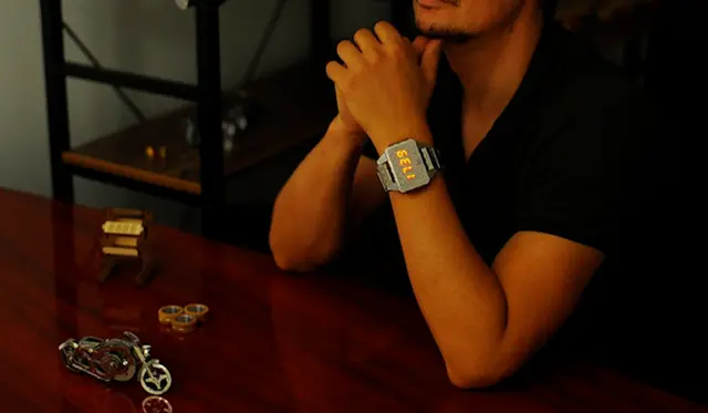 メカニカルでモダンなデザインと、レトロな赤い数字が融合しています。